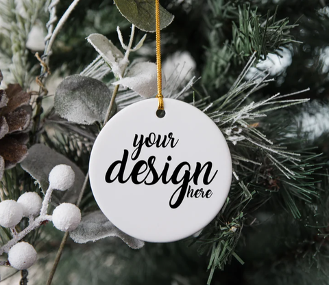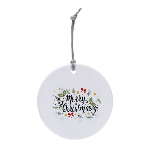 Colgante personalizado para decoración del hogar, colgante de porcelana redonda blanca, ornamento blanco de cerámica por sublimación con cadena dorada